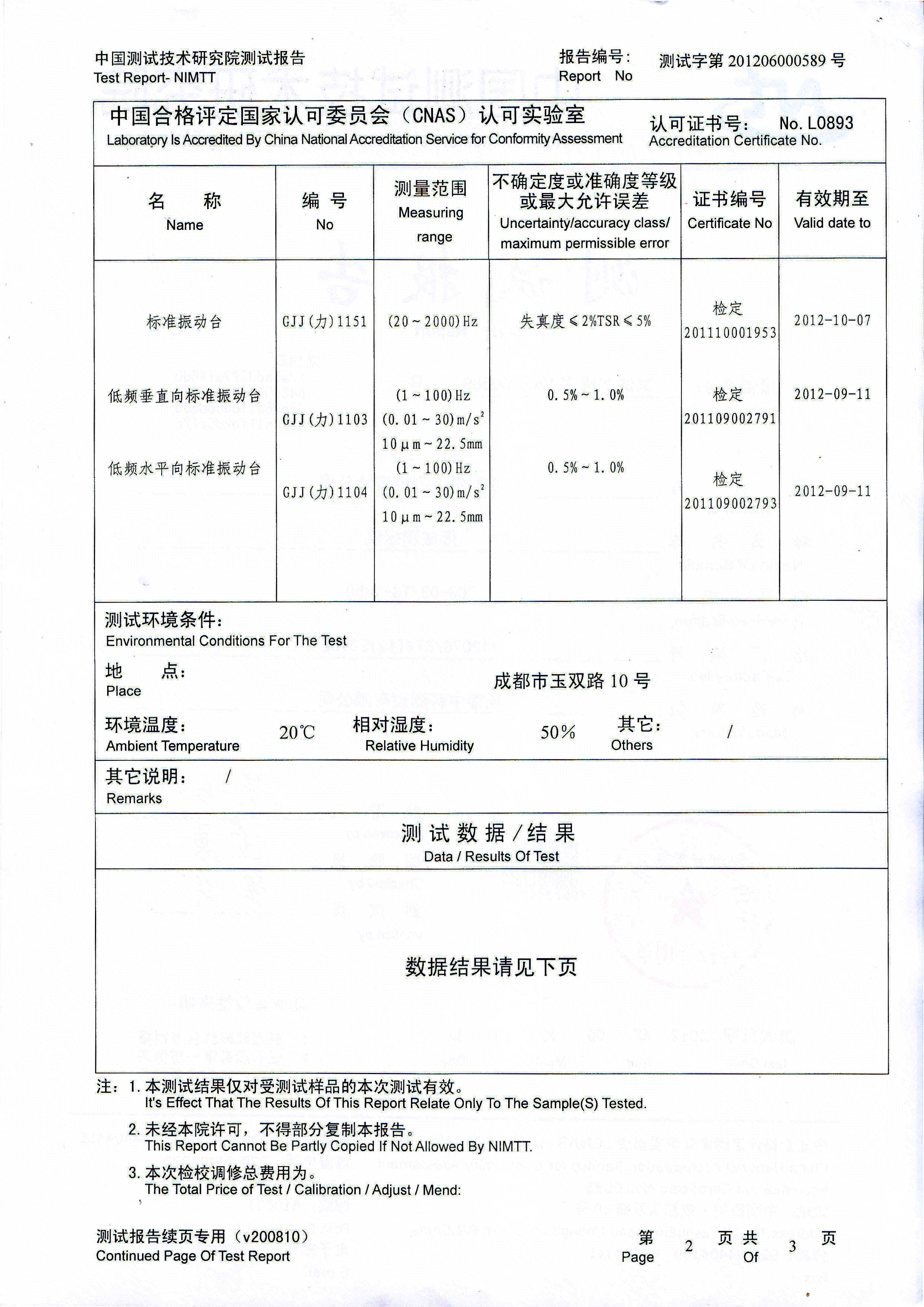 (本傳感器為X、Y、Z三向振動(dòng)速度傳感器,因檢測單位振動(dòng)臺(tái)原因只能檢定Z向)