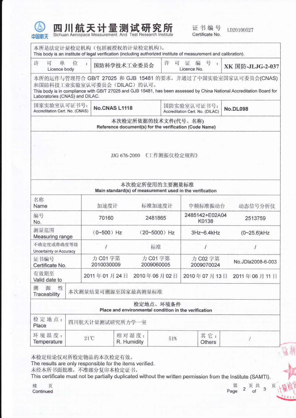 四川計(jì)量檢測科學(xué)研究院校準(zhǔn)證書